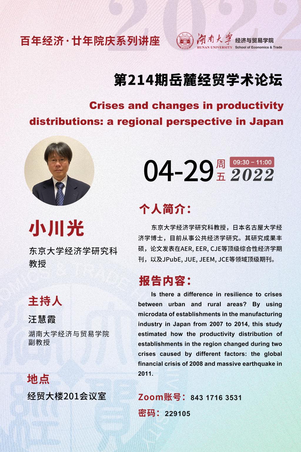 小川光:Crises and changes in productivity distributions: a regional perspective in Japan