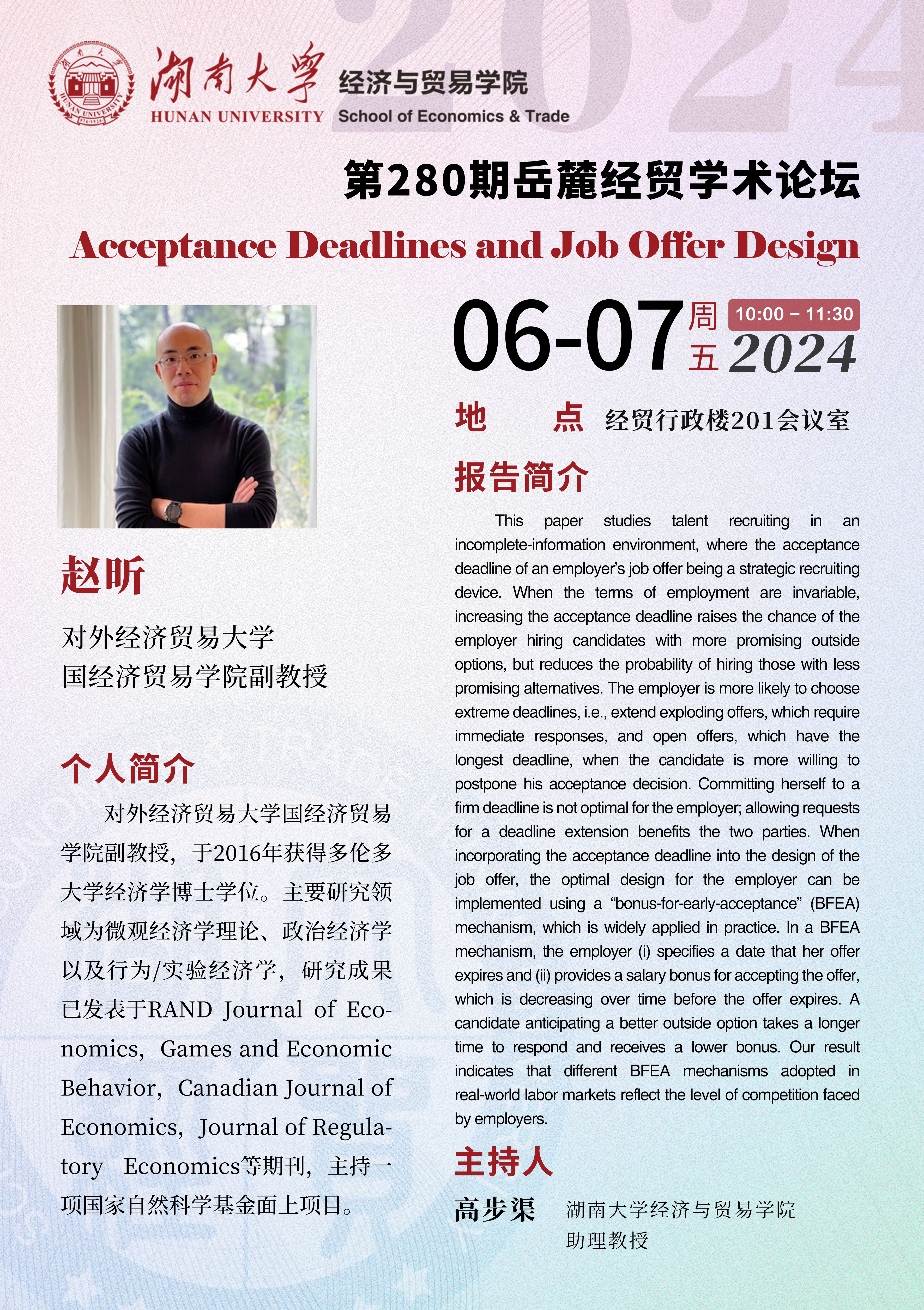 赵昕:Acceptance Deadlines and Job Offer Design