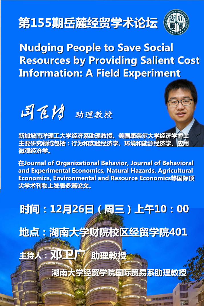 主题:Nudging People to Save Social Resources by Providing Salient Cost Information: A Field Experiment