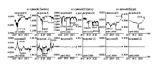 文章以非洲国家主权债券风险为切入点,以不同违约层级的非洲国家(赞比亚、尼日利亚、埃及)的十年期欧债为典型研究对象,构建多个债券风险动态影响系统(汇率冲击-出口/进口大宗商品-债券风险),探究了汇率冲击对非洲国家主权债券风险的动态影响,分析了大宗商品在非洲主权债券风险系统中所扮演的角色。