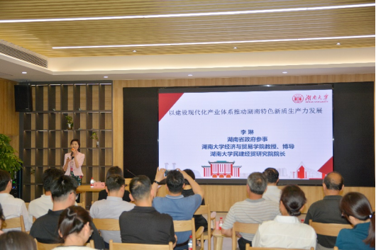 会上,李琳教授以“新质生产力是什么?为什么要发展新质生产力?如何因地制宜发展新质生产力?”为脉络,重点阐述了如何以建设现代化产业体系为突破口,推动湖南特色新质生产力发展。