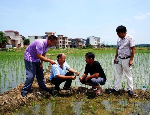 (2020年7月24日,宁远县水市镇水市村,科技特派员给种植大户介绍水稻新品种“恒两优金农丝苗”早期田间管理技术。为促进科技成果转化开展贴心服务。乐水旺 摄)