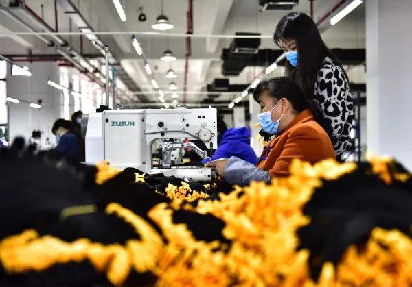 (2020年4月12日,蓝山县皮具箱包科技产业园,工人在生产线上作业。近年,该县加快标准厂房建设吸引企业入驻,推动皮具箱包产业转型升级。杨雄春 摄)
