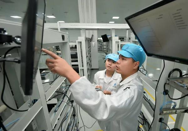 (2020年9月14日,湖南湘江新区湘江鲲鹏计算产业软硬件生产线,工人在对PC机拷机进行测试。记者 李健 通讯员 王志宇 摄)