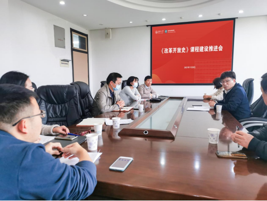 在经贸大楼617会议室召开《改革开放史》课程建设研讨会。课程负责人、院长侯俊军和课程团队全体成员共同参加了研讨。会议由副院长曹二保主持。