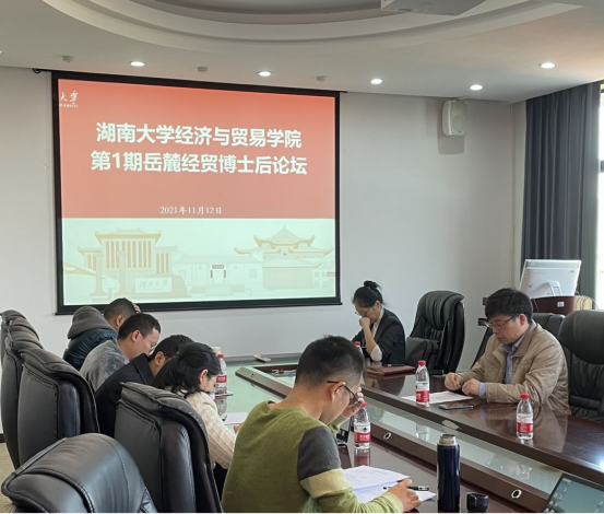 在经贸大楼617会议室召开首届岳麓经贸博士后论坛。院长侯俊军,院长助理谢锐、徐航天参加会议。会议由博士后张谦主持。