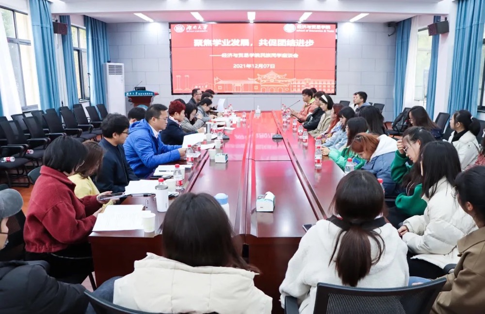 本次座谈会聚焦同学们的学习、生活、就业等内容进行了全面、细致的交流,经贸院2018级本科生美合日班古丽等同学积极发言,分享学习经验。参会老师现场解答了同学们的困惑与疑虑,帮助大家更好地规划大学各阶段的学习生活。