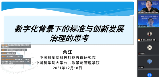 中科院战略咨询研究院产业科技创新研究中心主任余江教授以“数字化背景下的标准与创新发展治理”为题发表演讲。他列举了全球价值链地位的要求在不同年代的变化,得出标准在其中的作用愈发重要的结论,并阐述了数字化背景下的标准与创新发展治理遇到的新挑战与新问题。最后,他提出数字化时代的中国标准走出去和引进来同等重要。