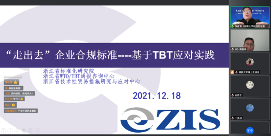浙江省标准化研究院周树华研究员的演讲题目是“走出去”企业合规标准——基于TBT应对实践。他指出,当前我国企业在走出去的过程中,面临的“合规”要求是全球性的。然后阐述了TBT数量屡创新高、涉及领域广泛等特点。最后,他从现有合规指南、标准框架、标准进展三个方面提出了对企业合规标准的设想,希望能够助企业顺利地“走出去”,使企业能够在大变局背景下走得更远。