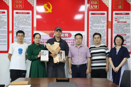 为光荣入伍的本科2021级学生迪力木拉提·艾买提江举行欢送会并进行座谈交流。学院党委书记祝树金,党委副书记李曼,学工办主任蔡婕萍,辅导员胡煊赫、艾克帕尔·吐地参与交流。