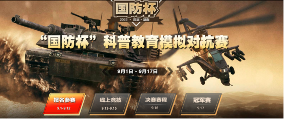 2022年9月17日是全国第22个全民国防教育日。为深入开展全民国防教育,营造全社会关心国防、热爱国防、建设国防、保卫国防的良好氛围,湖南省全民国防教育委员会办公室、湖南省高等教育学会国防教育专业委员会联合举办湖南省首届“国防杯”科普教育模拟对抗赛。总决赛于9月17日下午在湖南军联国防教育基地举行。