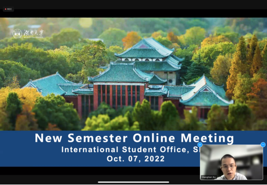 举行2022年留学生秋季学期见面会。学院分管国际化工作副院长徐航天,留学生办公室蔡祯,学院在籍博士AMAL AHMED MOHAMMED AL-ANESI以及来自世界各地的在籍国际学生一起参加本次会议。由于疫情影响,当前多数国际学生不在校,此次会议在线上举行。会议由副院长徐航天主持。