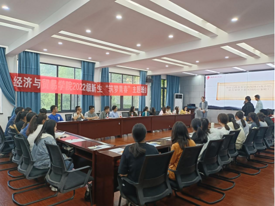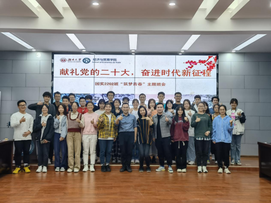 经济学类2201班主题班会上,学院党委书记祝树金与同学们亲切交谈,勉励同学们找准自己的目标为之奋斗,成为一个“实事求是,敢为人先”的湖大青年。他强调,同学们应深入学习党的二十大精神,刻苦学习专业知识,广泛阅读文献资料,提升自我创新能力,成为有理想、有本领、有担当的时代新青年,为建成社会主义现代化强国不断奋斗。