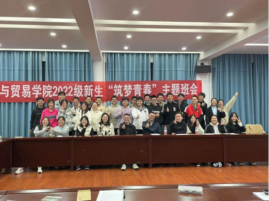 在经济学类2202班班会上,副院长徐航天结合当下形势对经济发展进行了深刻解读,鼓励同学们要把个人梦想与中国梦相结合,并对同学们提出了三点期望:一是做好未来规划,绝不可怠惰不勤,培养奋发砥砺好学心态:二是珍重大学友谊,用心培养交际能力,形成“推己及人“以至”己欲达而达人”的交往“惯性”三是嘱托同学们要以做行业领军人才为目标,圆梦未来,为建设社会主义现代化国家贡献一份自己的力量。