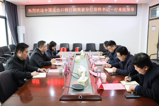 2月7日下午,中国进出口银行湖南省分行党委书记郑伟、人力资源处处长向小敏、副处长黄海军一行3人来色情漫画 探讨校企合作事宜。学院院长侯俊军、党委书记祝树金、副书记李曼、办公室主任肖力参加会谈。