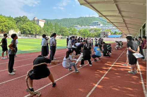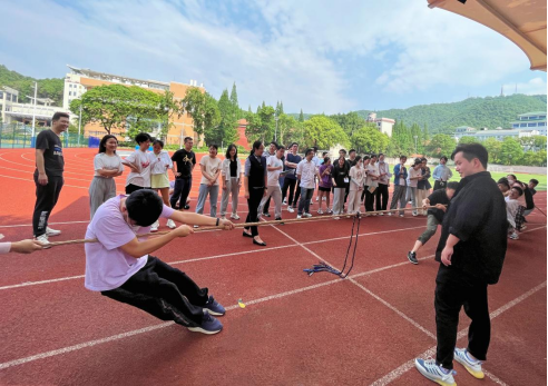 于财院校区操场开展“师生同心,凝心聚力”拔河比赛。