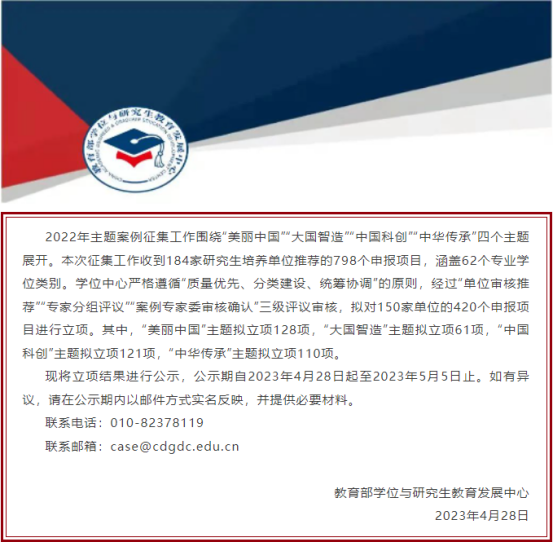 近日,教育部学位与研究生教育发展中心(简称学位中心)发布了“中国专业学位案例中心”2022年主题案例征集立项结果,由色情漫画