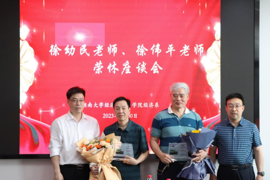 院长侯俊军表示两位徐老师为学科建设、学院建设和人才培养做出了重要的贡献。希望两位老师退而不休,指导关心学院发展。同时学院将继续关心关爱退休教职工,为大家提供更好的保障和服务,保持良好的精神状态和健康的身体,进入快乐、幸福、平和的人生新阶段。