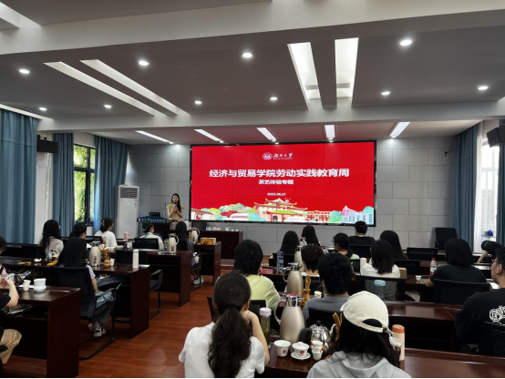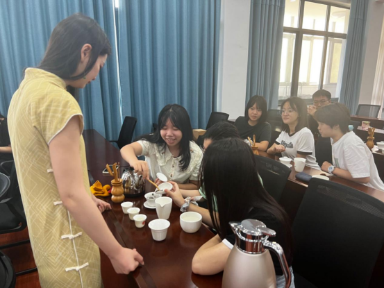 茶艺文化实践专题——为切实营造美育向上氛围,加强优秀传统文化传承,组织开展茶艺主题劳动教育实践活动,协同邀请学院工会成员参与体验。活动邀请到湘茶学院专业茶艺师开展讲座,详细讲解了茶艺文化的基本知识,带领同学们亲身体会选茶、泡茶、敬茶、品茶全过程。同学们沉醉在自己泡制的茶香中,感慨于传统茶文化的浓淡如练和变化多样。