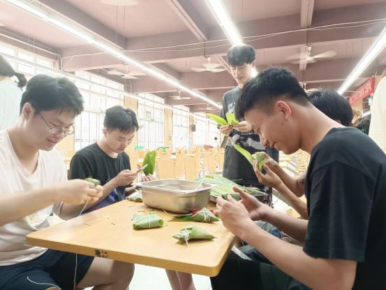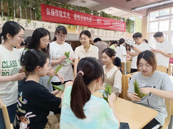 传统文化教育实践专题——为更好传承和弘扬中华优秀传统文化,让学生在实践中感悟劳动的意义,学院联合后勤保障部开展端午主题劳动教育实践。同学们在食堂工作人员的带领下,折粽叶、填糯米、裹叶子、扎棉线,一道道工序有条不紊。粽叶青,糯米白,棉线长,食堂内粽香飘扬,同学们在劳动中感受到了包粽、食粽的乐趣,也感受到了传统节日文化的魅力。