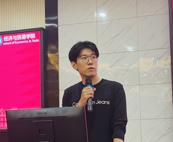 新生代表经济2301班肖雪表达了对学校、学院的老师和学长学姐们的感谢,对未来丰富多彩的校园学习生活充满期待,希望往后和同学们携同并进,不断沉淀,“如切如磋,如琢如磨”,不断学习并共同进步。