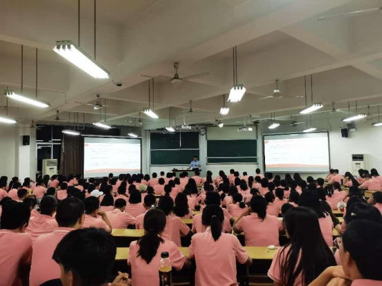 2023级新生思政课在二教501、502开展。学院党委书记祝树金教授以“铸魂增智强本领,正风促干勇担当,争做堪当民族复兴大任的时代新人”为主题,为2023级全体新生讲授思政大课,由学院团委书记、2023级本科辅导员肖遥主持。