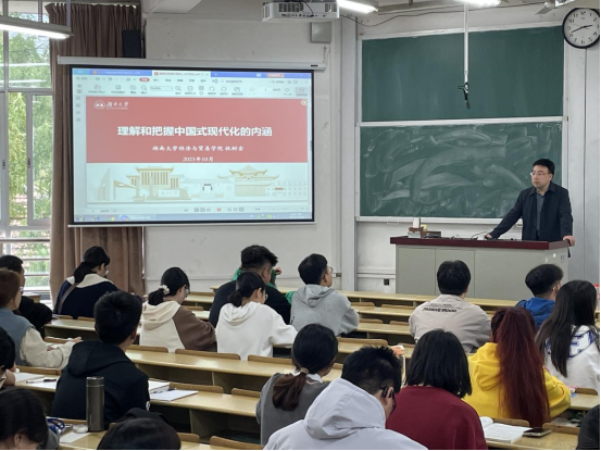 祝树金讲授《理解和把握中国式现代化的内涵》专题党课。他从中国式现代化的历史演进、基本特色、战略安排以及本质要求等方面展开介绍。他强调,学员们要认真学习领会党的二十大精神,结合专业和政策深入学习,为全面建设社会主义现代化国家、全面推进中华民族伟大复兴而团结奋斗。