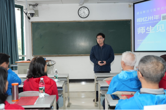 李经元老师是财政891班的班主任,他在发言中感慨时光变迁,当年的小树成长为了参天大树,成为了国家之栋梁,这是师之幸,更是国之幸。