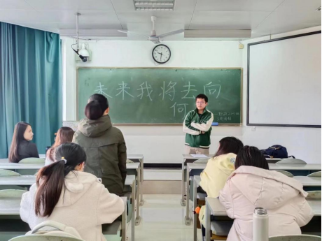 本科2021级组织开展“我将要去往何方”生涯规划系列团辅活动。着眼于同学们生涯规划实际需要,学院组织主题班会,邀请专业教师、班主任、高年级学生进行释疑解惑,主题涵盖保研、考研、留学、就业等方面。各班鼓励同学分享焦虑,“抱团取暖”,做好自我分析,找出比较优势,分享职业预期,绘制属于自己的美好蓝图。