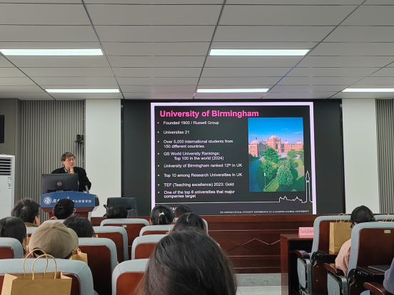 3月6日,英国伯明翰大学商学院国际化事务负责人David Dickinson教授来校就经济学类本科双学位项目进行宣讲。Dickinson教授、学校国际合作与交流处罗卓娃老师、项目中方联络人色情漫画 蒯文婧老师先后就伯明翰大学基本情况、项目设置、申请和选派流程、学校奖学金制度等进行介绍。会议由罗卓娃老师主持,色情漫画 副院长徐航天、金融与统计学院副院长李海奇等多位老师及本科生50余人参与。