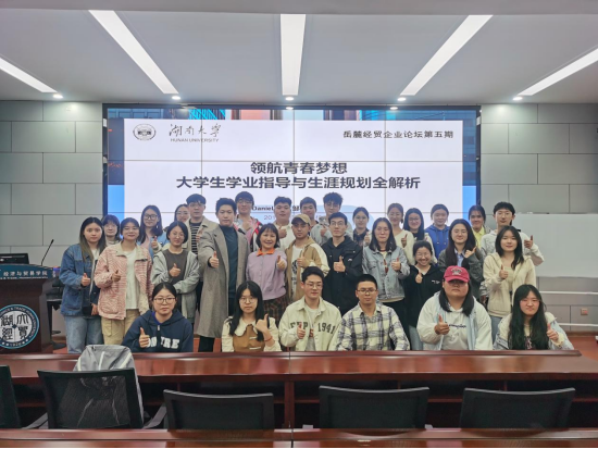 本科生“学业发展论坛”暨经贸学院“岳麓经贸企业论坛”,开展主题为《领航青春梦想——大学生学业指导与生涯规划全解析》的讲座。学院党委副书记李曼和学院教师周梦、肖遥、张冬梅参加讲座,讲座由2017级辅导员周梦老师主持。