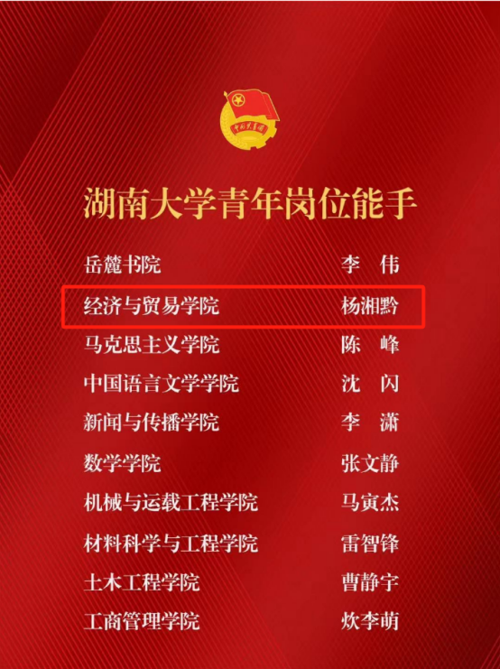 杨湘黔老师获评“青年岗位能手”称号