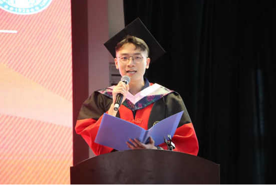 教师代表杨湘黔希望同学们在未来的日子里能倾听自己的内心,摆脱“社会时钟”的束缚。同时祝愿毕业生以梦为马,不负韶华,在人生的道路上,勇往直前;心怀感恩,不忘初心,用智慧和勇气,书写属于自己的辉煌篇章。