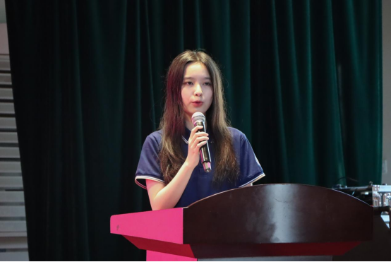 在校本科生代表2021级沈梦婷向同学们分享了自己三年来的成长,面对学习难关不怕苦,热心服务勇争先,她鼓励学弟学妹们把自己培养成能壮得起胆量、挺得起胸膛、挑得起大梁的经世致用领军人才。