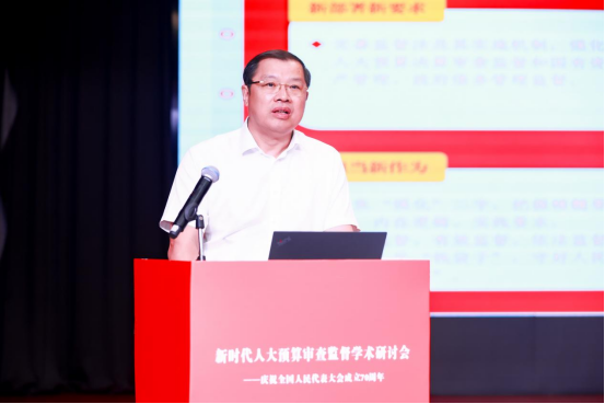 财院校区举行。本次研讨会旨在庆祝全国人民代表大会成立70周年,深入探讨新时代人大预算审查监督的理论创新与实践发展。
