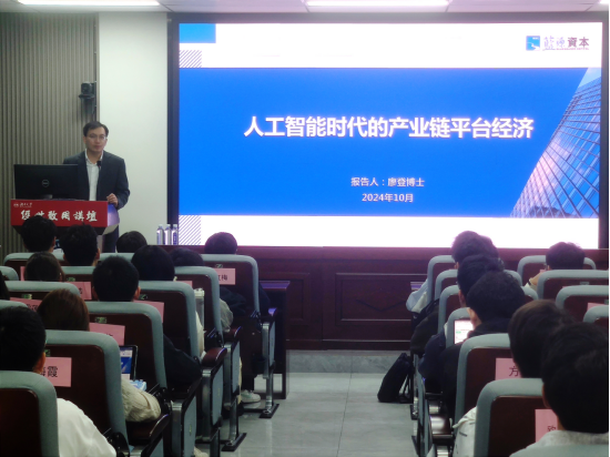 本科生“学业发展论坛”暨经贸学院“岳麓经贸企业论坛”,开展主题为《人工智能时代的产业链平台经济》的讲座。学院党委副书记李曼、副院长曹二保、数字经济系主任刘征驰、万光羽老师以及学院本研100余名学生参加讲座,讲座由数字经济系主任刘征驰主持。廖登博士是计算机工程博士、国家级人才,产业互联网和人工智能专家,曾领导多个世界级企业的软件技术开发和数字化转型实践,他曾担任中联重科工业互联网技术中心总经理和思科弹性计算事业部负责人等多个重要职务,拥有丰富的行业经验。