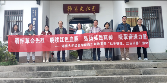 11月9日上午,财政教工党支部一行开展“以学铸魂,红色研学——缅怀革命先烈,赓续红色血脉;弘扬英烈精神,吸取奋进力量”的主题教育活动,赴郭亮故居开展实地研学。