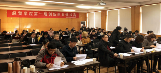 第一届创新创业选拔赛在行政楼401举办。此次比赛由经贸学院创新创业中心组织筹办,比赛分为“挑战杯”大学生课外学术作品竞赛、“互联网+”创新创业大赛和“国际商务专业学位创新创业精英挑战赛”三个参赛组别。共收到参赛项目24件,其中“挑战杯”组别14件,互联网+组别作品5件,国际商务精英挑战赛作品5件。参加竞赛的本科生和硕士生共计104人。