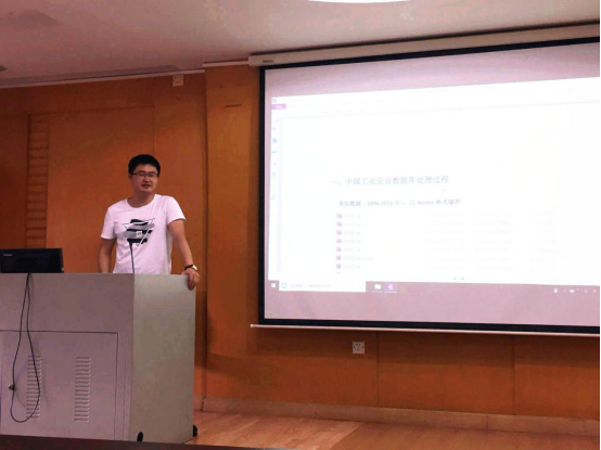 钟腾龙博士首先介绍了中国工业企业数据库的处理过程,包括格式的转换,保留重要变量以及对原始数据进行清理的方法;其次,向同学们介绍了中国海关统计数据库的处理过程以及需要注意的问题,最后对工业企业数据库与海关数据进行匹配。为了让同学们能够更好地进行计量实证研究,钟腾龙博士从计量模型设定方面、计量回归方法、多重共线性问题、重视稳健性检验等四个方面入手阐述了如何相对合理地进行计量实证研究。