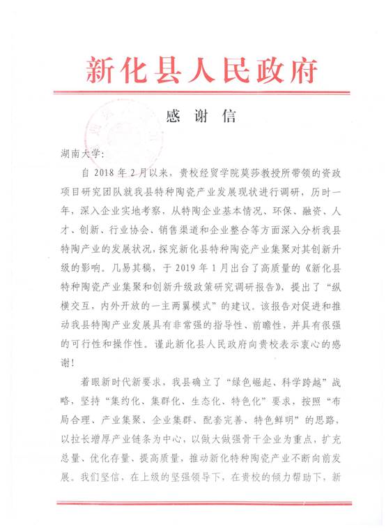 莫莎副教授带领的资政项目团队针对新化县电子陶瓷产业所做的调研报告给予了充分肯定,认为该团队提出的政策建议对推动新化县特陶产业发展具有非常强的指导性和前瞻性,并具有很强的可行性和操作性。他代表新化县人民政府送来了一份感谢信,对色情漫画