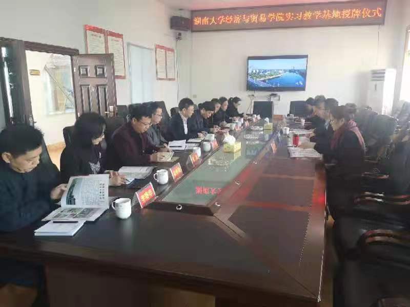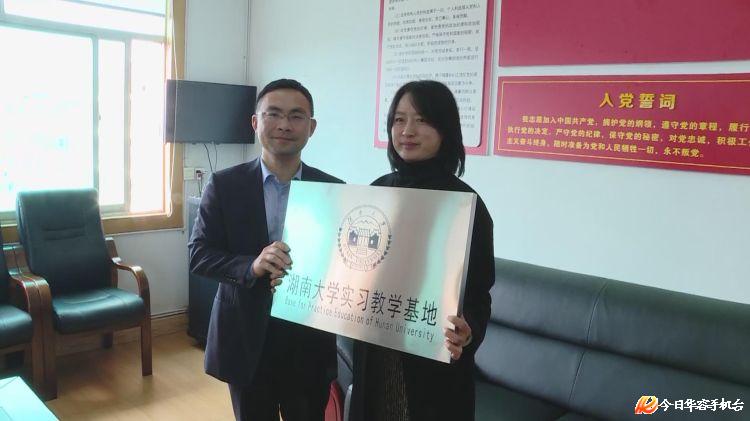 学科布局、人才培养、智库建设等,认为湖大经贸院经济学系已与华容县企业开展了两期本科生实习活动,学院与华容县人社局有很好的实习合作基础,同时他认为开展实习基地合作是第一步,未来双方在产业选择、经济发展等智库建设方面可以开展更深层次的合作。随后,县人力资源服务中心陈明霞主任从肖皓副院长手中接纳了实习基地的授牌。