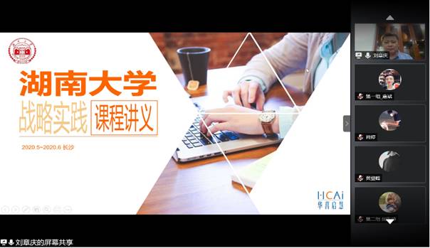 、金融与统计学院和工商管理学院的本科生和硕士生。疫情期间,刘章庆博士采取“云授课+分组行动教学”的授课方式将传统教学与企业实践紧密结合,以他在华为丰富的战略设计与执行经验为同学们细致介绍了BLM战略领导模型的主要内容。为了让学生更好的理解教学内容,刘章庆博士将学员精心分成四个小组,在企业导师“一对一”全程指导下进行模拟实战。通过实战演练与互动交流,学员们纷纷表示对教学内容有了更加深刻的理解,并十分期待对后续课程的深入学习,希望能够通过“战”与“学”相结合,将理论更好地运用于实践。