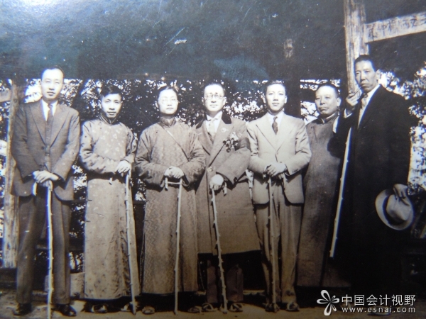 从1942年到1946年,林树湘先生先后在川康银行盐业部、张芭马煤矿、五通桥化学公司担任总会计师、副总裁、总裁。右起第三为谢霖先生,左四为林先生。