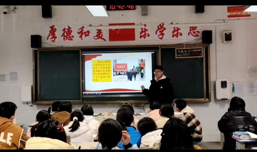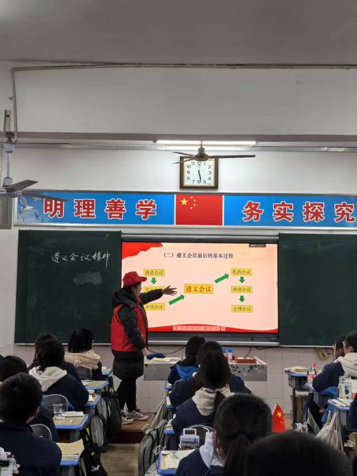2025年1月21日,在江西省乐平市,叶子豪为高中学生带来遵义会议精神宣讲。他引用毛主席的“雄关漫道真如铁,而今迈步从头越”,阐述遵义会议如何在艰难时局中扭转乾坤,让学生们深刻认识到这段历史的转折意义,引导大家深入思考其对当下的启迪。