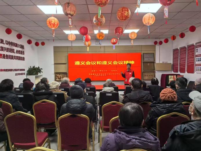 2025年2月12日,在安徽省六安市霍山县徽衡老年公寓,汪浩宇开展遵义会议精神宣讲。他从“雄关漫道真如铁”的长征困境讲起,阐述遵义会议的关键转折,分享党在艰难中坚守、于变局中开新局的故事。工作人员与老年人专注聆听,真切领悟遵义精神内涵。