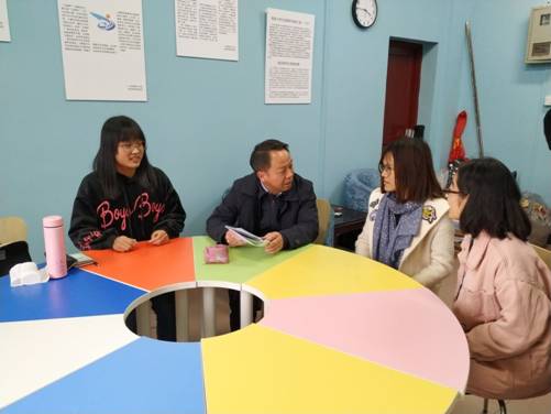 段献忠校长关切地询问了新生对于新校园新专业的适应情况,在听到三位同学都表示能够很好的适应新的学习生活环境之后,段校长点头称赞。在这之后,段校长还详细询问了新生年级人数、学习情况等等。
