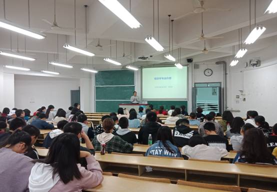 专业介绍会在二教402,405召开。本次介绍会主讲人是国际经济与贸易系主任钱晓英老师,财政税务系系主任谭光荣老师,经济学系主任刘志忠老师。