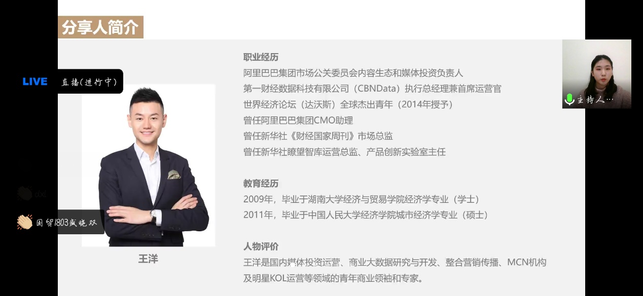 “不管是消费升级趋势、还是年轻人的消费方式、甚至明星的商业价值,CBNData总能给出权威、精准、客观的分析,这背后就是大数据的魅力使然。”王洋介绍到。在同学们探讨数据时代的发展方面,他表示:“我们希望继续引入更好技术,坚定不移建立跨领域商业数据库,数据将成为一项生产要素活跃在各行各业,未来大数据将是新消费市场的增长驱动力。”