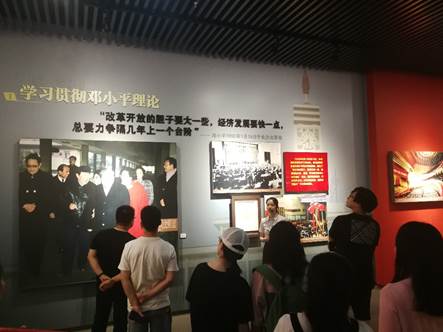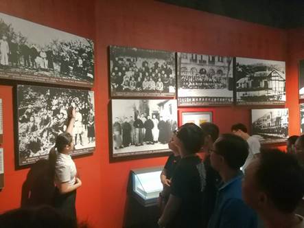 全体成员合影留念后,跟随陈列馆讲解员,来到第一部分——开辟新天地。湖南是中国共产党和中国革命的重要策源地,是毛泽东早期领导革命运动、探索革命道路的地方,是人民军队的摇篮。通过长沙建党、革命洪流、星火燎原、抗日救亡四个单元的详细介绍,我们再次深刻感受到中国人民革命的胜利是用鲜血凝成的,千百万优秀共产党员把光荣写在了党旗上。
