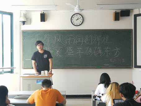 活动的第二部分中,团支书王子方同学结合区域经济学、发展经济学相关原理,讲述了新时代我国发展的战略及相关问题。通过分析当今形势、结合我国优势,以引导同学们上台介绍家乡发展模式的形式向同学们生动的展现了当今时代祖国发展的方向;并鼓励同学们用自身所学报效祖国,更加积极建设社会主义工作。
